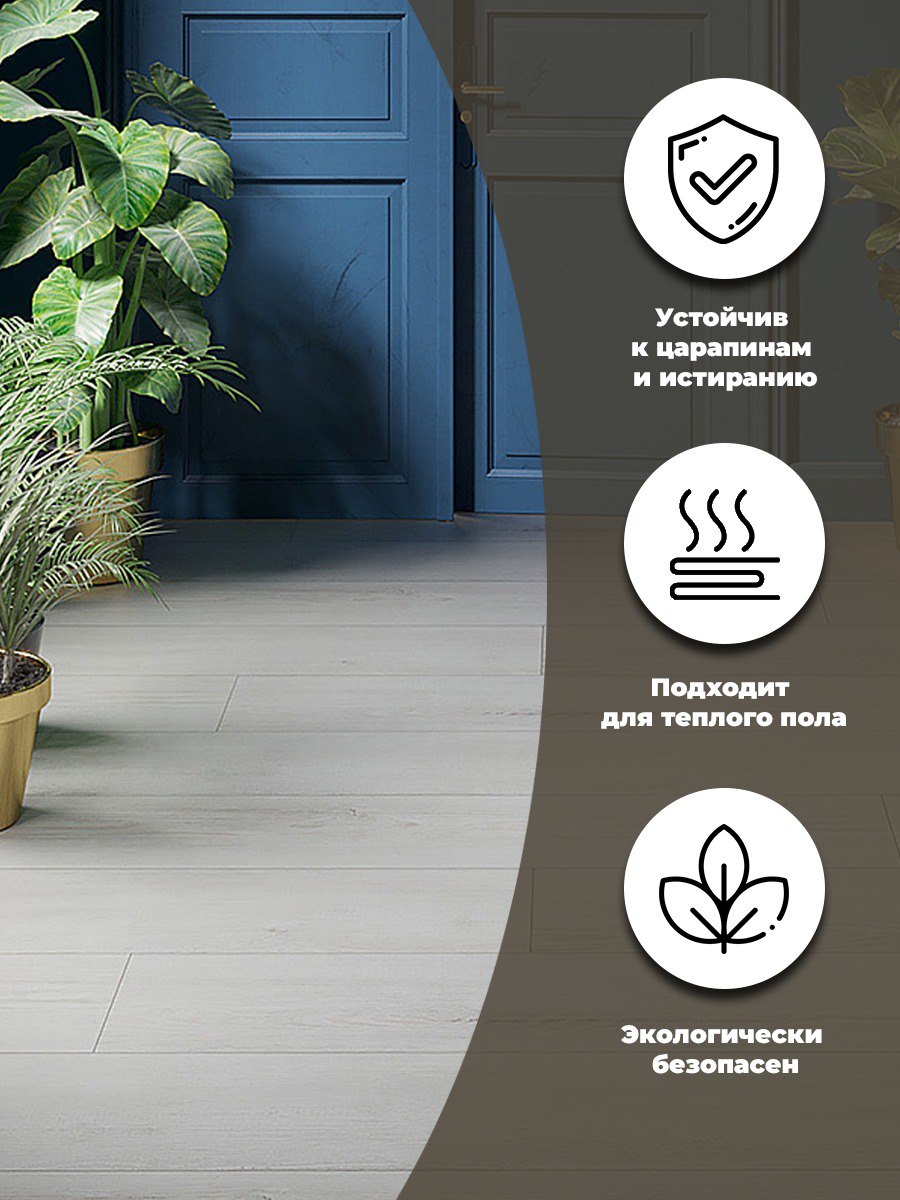 Напольное покрытие изготовленное из высокоплотной древесноволокнистой плиты HDF, с нанесением декоративного слоя, точно отображающим структуру натурального дерева и покрытое защитной пленкой. Изделие предназначено для жилых и офисных помещений, совместим с теплым полом. Прост в укладке и эксплуатации.